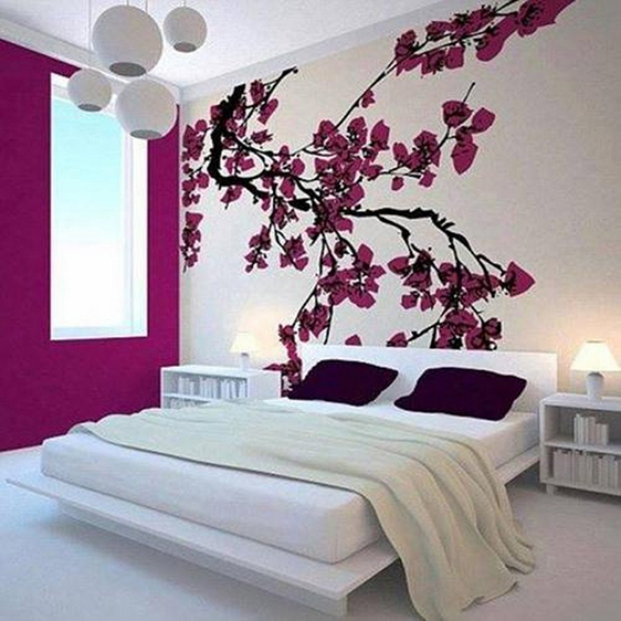 10. Mẫu phòng ngủ cá tính với bức tranh hoa màu hồng trên nền tường trắng. Không cần sử dụng quá nhiều chất liệu hay phong cách thiết kế, chỉ cần sử dụng màu sắc và họa tiết khá đơn giản cũng khiến không gian phòng ngủ của bạn trở nên thật khác biệt.