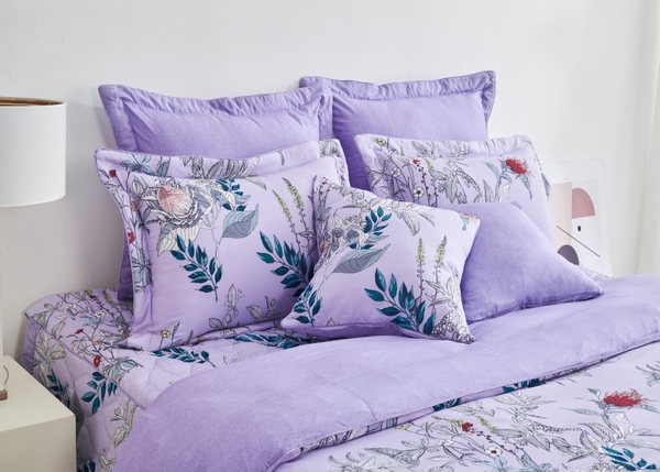 Nền tím nhạt cực đỉnh, mang phong cách trẻ trung tươi mới, được làm nổi bật bởi họa tiết hoa lá sắc nét. Ngắm nhìn bộ chăn ga Everon này bạn sẽ không kìm nổi lòng mình, hãy ring ngay một bộ nhé, để mang không gian tuyệt vời về cho phòng ngủ.