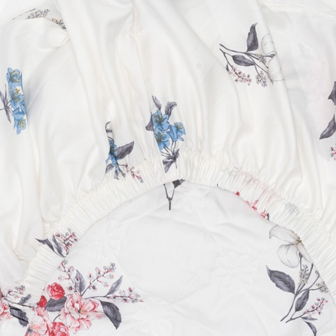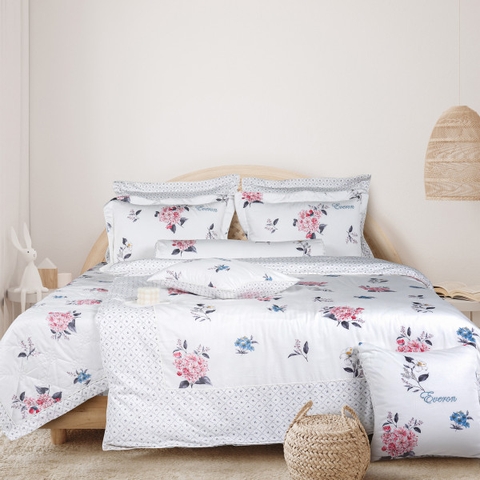 Bộ Everon EPM 24064 chất vải Modal mềm mịn sáng mượt. “Xuân Thì” lấy cảm hứng từ thanh xuân rạng rỡ - quãng thời gian đẹp nhất mà ai cũng muốn quay trở lại. Từng bông hồng nở rộ điểm xuyết vài cánh hoa ly mềm mại trên nền trắng tinh khôi tựa như lời ước hẹn thuở hai mươi. “Xuân thì” đưa ta sống mãi với những hoài niệm, mộng mơ của tuổi trẻ, say mê cháy mãi với lý tưởng của riêng mình.