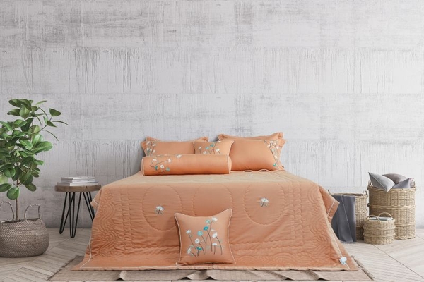 Bộ chăn ga Everon mầu vàng cam ấn tượng, mô tả cảnh mùa thu miền Bắc. Hạ qua thu đến đem theo sắc mầu của những chiếc lá lúc giao mùa. Với cái nắng không rực rỡ như sắc vàng mùa hạ, tông mầu cam trong sắc thu nhẹ nhàng và trẻ trung hơn.