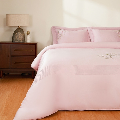 Bộ chăn ga ESM26004 là lựa chọn hoàn hảo cho những ai yêu thích sự dịu dàng, nữ tính nhưng vẫn đảm bảo được nét sang trọng và tinh tế. Với tone màu hồng pastel nhẹ nhàng, kết hợp họa tiết hoa thêu duyên dáng, mẫu chăn ga này mang đến không gian nghỉ ngơi ấm áp, ngọt ngào và đầy cảm hứng lãng mạn.