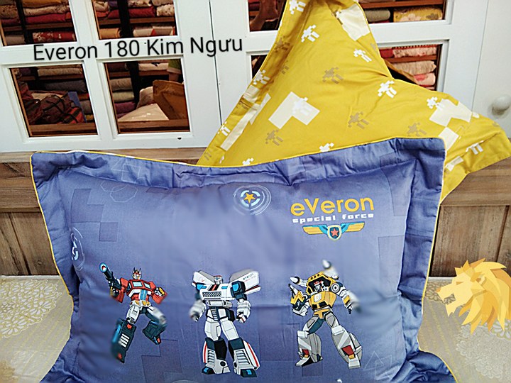 Bộ chăn ga gối mang tựa đề người bảo vệ, dựa theo loạt phim ăn khách của Hollywood Iron Man về người sắt dũng cảm, chiến đấu bảo vệ thế giới, bảo vệ cuộc sống bình an của loài người. Bộ chăn ga Everon 2018 với tông mầu xanh đậm, thiết kế họa tiết ngộ ngĩnh với những Robot khỏe mạnh đang sẵn sàng chiến đấu sẽ làm các bé trai say mê. Chất vải cotton xốp mềm mịn, nâng niu làn da của bé, tạo cho bé giấc ngủ sâu.