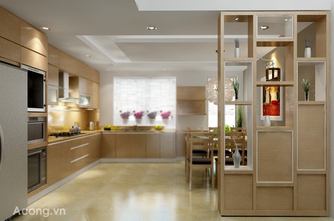 Hình ảnh vách ngăn phòng khách sang trọng bằng gỗ công nghiệp vừa được dùng để ngăn chia phòng khách và khu bếp, đồng thời cũng có tác dụng làm vách trang trí cho phòng khách. Với thiết kế gồm nhiều họa tiết hiện đại được tạo bởi các những chi tiết nhỏ hòa quyện với nhau. Đặc biệt bạn hoàn toàn có thể bày các đồ trang trí như bình,lọ pha lê hay những khung ảnh lên vách để tạo thêm vẻ sang trọng cho vách ngăn này. Mẫu vách ngăn gỗ này được tích hợp thêm kệ tivi nên rất phù hợp cho việc trang trí phòng khách.